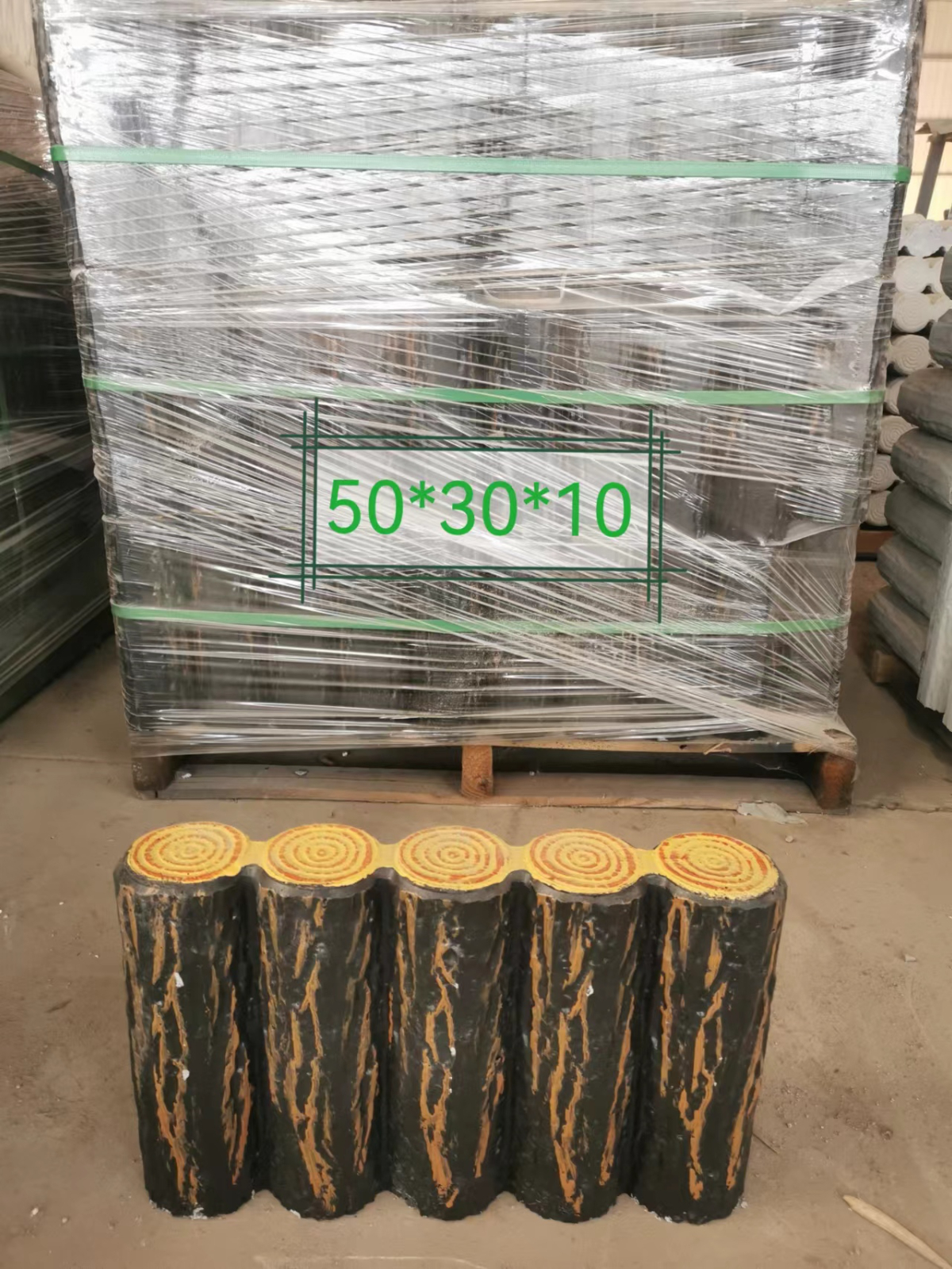 在灌混凝土之前,需要把鋼筋插入到模具孔中,然后再把混凝土倒入仿木樹樁石模具中、靜置等干脫模圖片如下: